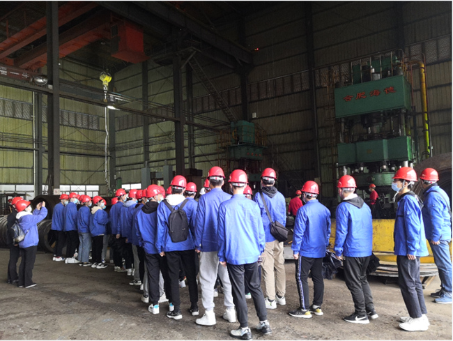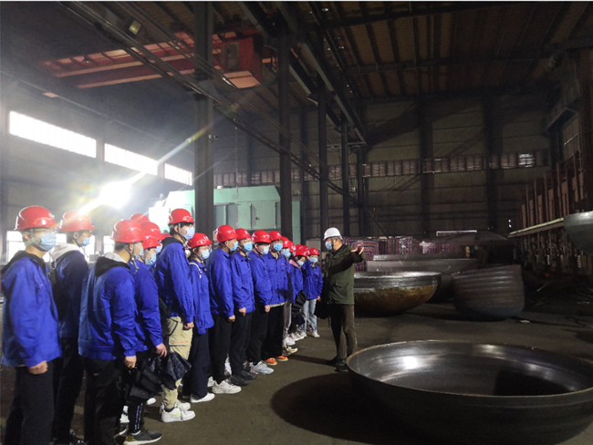 公司董事長貴建峰帶領師生代表們先后參觀了廠區和生產車間,隨后在會議室給老師和同學們詳細介紹了公司的發展歷程和企業文化,讓他們對公司的產品及行業有了一個充分的了解。同時還將封頭行業的發展史做了簡要介紹,讓同學們對封頭行業的發展有了基礎的認知。最后還給師生們分享了自己的經歷經驗,讓同學們對職業規劃有了一個初步了解。