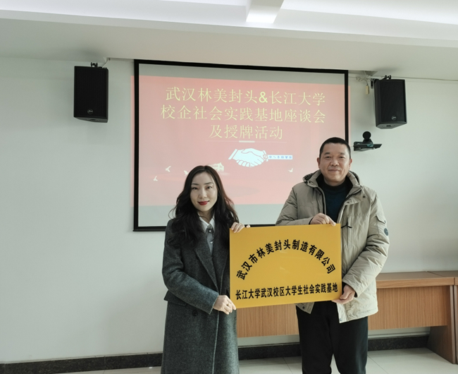 隨后,在雙方的共同見證下,長江大學團工委書記王仲玥向林美公司頒授“長江大學大學生社會實踐基地”牌匾。