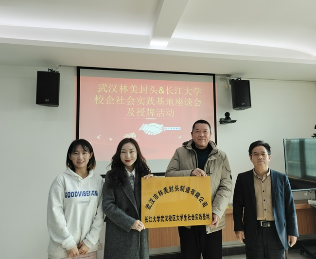12月10日,長江大學與我公司校企合作大學生社會實踐基地授牌儀式在公司會議室成功舉行。長江大學教授喻高明、團工委書記王仲玥、青年志愿者服務總隊隊長王秀云、林美封頭公司董事長貴士利、綜合部部長貴海芳、辦公室主任王敏參加授牌儀式和調研交流。