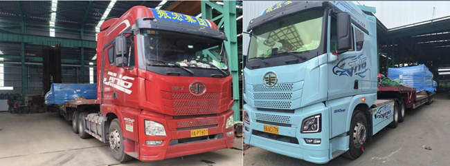 幾輛大貨車排成長龍,陸續發貨中……看似打仗,實則井條有序,大家分工合作,有條不紊....